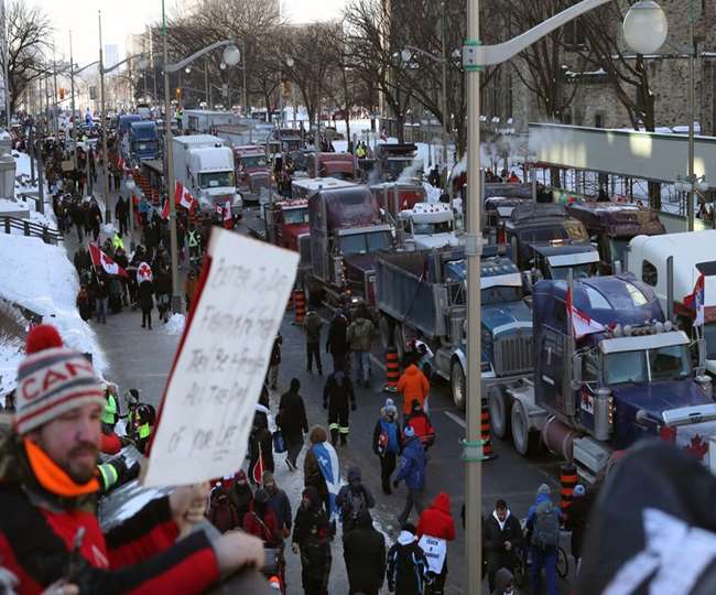 आपको बता दें कि कनाडा की सरकार ने अमेरिका जाने वाले ट्रकों के ड्राइवर्स के लिए वैक्सीनेशन अनिवार्य किया है। इसको लेकर ट्रक ड्राइवर्स काफी गुस्से में हैं और इसका विरोध कर रहे हैं। वो कनाडाई पीएम के उस बयान से भी काफी भड़के हुए हैं जिसमें उन्होंने कहा था कि इन ड्राइवर्स को महत्व नहीं रखने वाले अल्पसंख्यक बताया था। इसके विरोध स्वरूप इन लोगों ने ओटावा की ओर जाने वाले रास्ते पर करीब 70 किमी लंबी ट्रकों की लाइन लगा दी है।