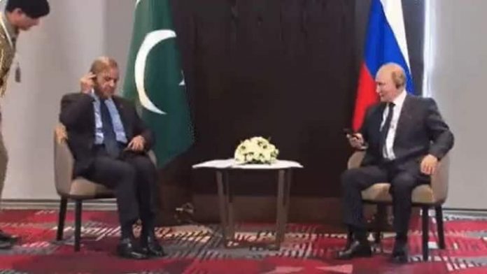 शिखर सम्मेलन से इतर दोनों नेताओं के बीच द्विपक्षीय बैठक हुई थी। व्लादिमीर पुतिन और शहबाज शरीफ एक साथ बैठे थे। इस दौरान शहबाज शरीफ अपने हेडफोन के साथ संघर्ष करते देखे गए। इसके चलते वह सोशल मीडिया यूजर्स के बीच हंसी का पात्र बन गए हैं।