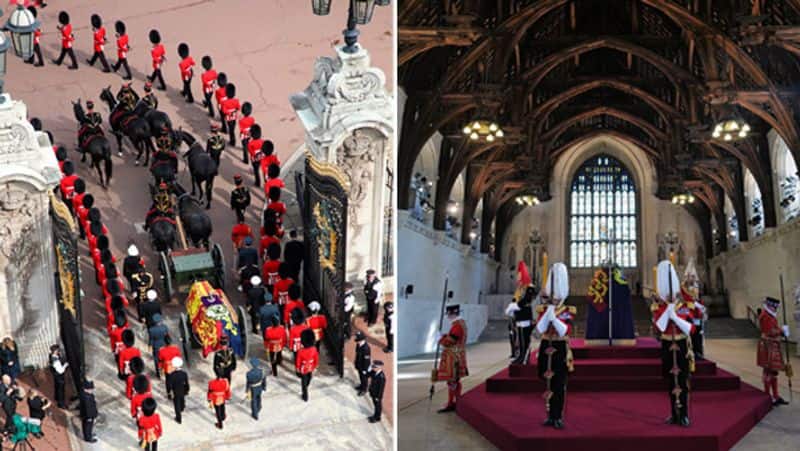 पिछले सम्राट की मृत्यु को 7 दशक हो चुक हैं,इसलिए ब्रिटेन अब फ्यूनरल की उन परंपराओं और जुलूस-तमाशों(pageantry) को भूल-सा चुका है। वेस्टमिंस्टर हॉल(westminster Hall) में रखे महारानी के ताबूत को देखने हजारों लोग घंटों कतार में खड़े हैं। आइए बताते हैं कि इस हॉल में वो कौन-सी 7 चीजें हैं, जो देखनी हैं। फोटो क्रेडिट- sky.com