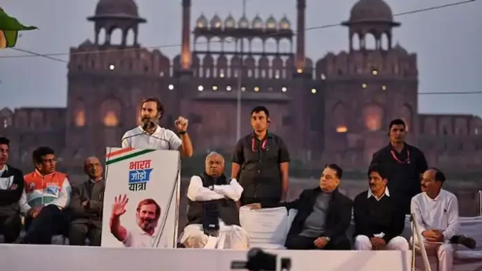 राहुल गांधी के नेतृत्व वाली भारत जोड़ो यात्रा शनिवार को दिल्ली पहुंची। दिल्ली में यात्रा के दौरान राहुल गांधी के साथ मशहूर फिल्म अभिनेता कमल हासन भी पैदल चले। इसके पहले राहुल गांधी के दिल्ली पहुंचने पर कांग्रेसियों ने जोरदार स्वागत किया। दिल्ली में यात्रा के दौरान सोनिया गांधी, प्रियंका गांधी समेत तमाम दिग्गज कांग्रेसियों ने मार्च किया। मार्च के बाद शाम को राहुल गांधी ने लालकिले के पास जनसभा की। लालकिले के सामने हुई जनसभा में राहुल गांधी ने कहा कि यह नरेंद्र मोदी की सरकार नहीं है। आपका सारा पैसा, किसानों और मजदूरों का, हवाई अड्डों, बंदरगाहों और सड़कों का पैसा सीधे उनके आकाओं की जेब में जाता है। यह अंबानी और अडानी सरकार है। असली मुद्दों से जनता का ध्यान हटाने के लिए हिंदू-मुस्लिम विवाद को हवा दी जाती है। बता दें कि दिल्ली पहुंची भारत जोड़ो यात्रा 2 जनवरी तक स्थगित रहेगी। 3 जनवरी को दिल्ली से यह यात्रा यूपी पहुंचेगी।