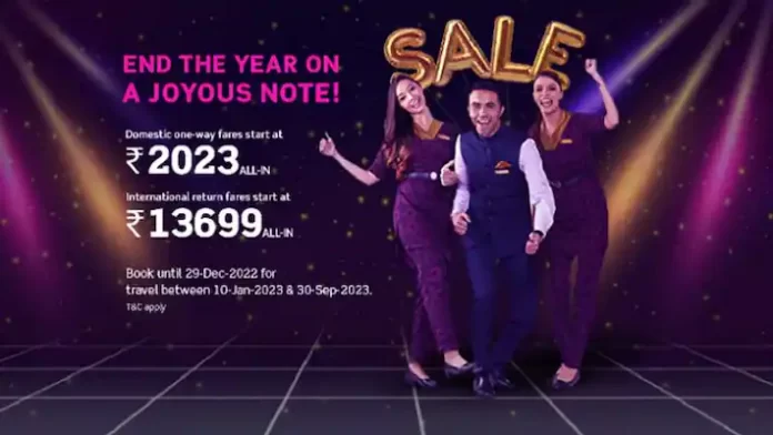 Vistara Year End Sale: अगर आप भी नए साल में हवाई सफर का मजा लेना चाहते हैं तो ये खबर आपके लिए ही है। विस्तारा एयरलाइन नए साल के मौके पर एक खास ऑफर लाई है। इसके तहत कंपनी साल 2023 में सिर्फ 2023 रुपए में डोमेस्टिक यात्रा का ऑफर दे रही है। अगर आप भी नए साल में सस्ते दाम में हवाई सफर करना चाहते हैं तो फिर विस्तारा की ईयर एंड सेल का मौका आपके लिए बेस्ट रहेगा। हालांकि, टिकट बुक करने का ऑफर सिर्फ 3 दिनों के लिए ही है।