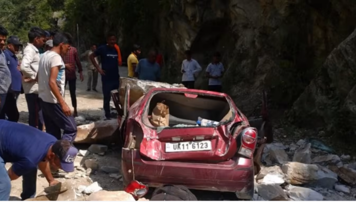 हादसा: कर्णप्रयाग-ग्वालदम हाईवे से गुजर रही कार के ऊपर गिरी चट्टान, दबे दो लोगों को निकालने के लिए रेस्क्यू शुरू