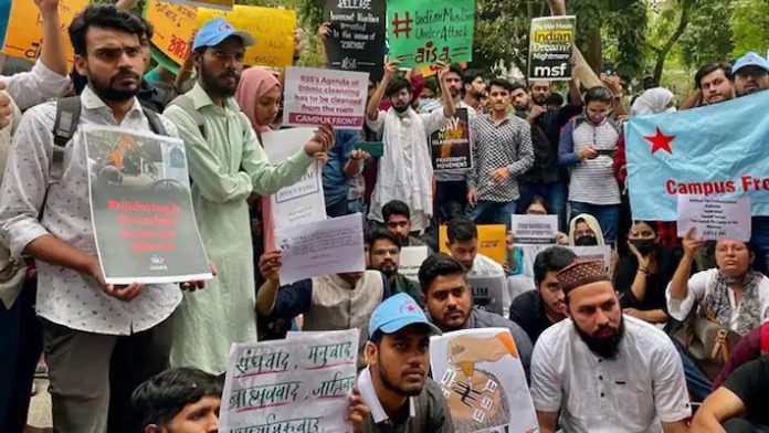 नई दिल्ली. जहांगीरपुरी में अवैध अतिक्रमण हटाने का मामला गर्माया हुआ है। हनुमान जयंती पर दिल्ली के जहांगीरपुरी में हुई हिंसा (Jahangirpuri violence) के बाद अवैध अतिक्रमण हटाने को लेकर राजनीति अपने चरम पर है। भले ही सुप्रीम कोर्ट ने 15 दिन तक के लिए ‘बुल्डोजर’ पर ब्रेक लगा दिए हों, लेकिन सियासत फुल स्पीड में है। शुक्रवार को TMC सहित कई पार्टियों के प्रतिनिधियों का जहांगीरपुरी दौरा शुरू हो गया है। हालांकि पुलिस उन्हें रोक रही है। यह तस्वीर twitter पर शेयर की गई है। 21 अप्रैल को जामिया मिल्लिया इस्लामिया के छात्रों ने जहांगीरपुरी में मुस्लिम घरों को तोड़े जाने के विरोध में यूनिवर्सिटी के गेट नंबर 8 पर विरोध प्रदर्शन किया था।
