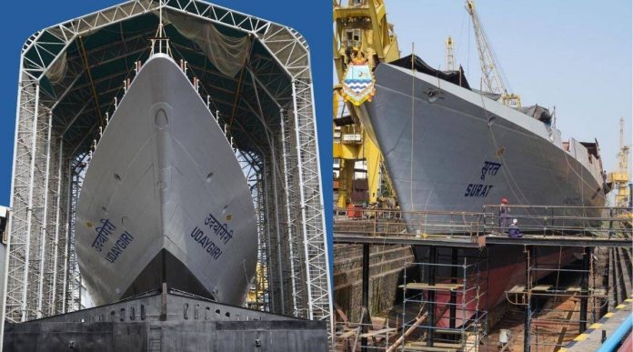 ये वॉरशिप नौसेना डिजाइन निदेशालय (DND) में डिजाइन किए गए हैं और आत्मनिर्भर भारत मिशन का हिस्सा हैं। मझगांव डॉक लिमिटेड (एमडीएल) में निर्मित ये युद्धपोत, प्रोजेक्ट 15 बी डिस्ट्रोयर आईएनएस सूरत और प्रोजेक्ट 17 ए फ्रिगेट आईएनएस उदयगिरी हैं। एमडीएल, जहाज और पनडुब्बी का निर्माण करने वाली सार्वजनिक क्षेत्र की रक्षा कंपनी है।