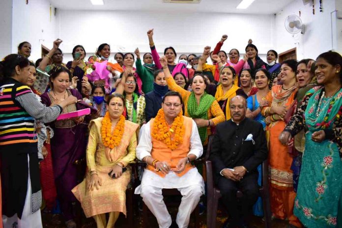 आज दिनांक 2 अक्टूबर को धनतेरस के शुभ अवसर पर मुख्यमंत्री एवं मति रेखा आर्या ने प्रदेश की आंगनवाड़ी कार्यकर्तीओ का 1800 ,मिनी आगनवाड़ी को 1500 व सहायिकाओं को 1500 प्रतिमाह मानदेय बढ़ोतरी कर मुख्यमंत्री घोषणा पूरी कर एक बहुत बड़ा तोहफा दिया है। जिस पर हजारों आंगनवाड़ी कार्यक्रतियो ने मुख्यमंत्री आवास पर ढोल नगाड़ों के साथ खूब जश्न मना कर माननीय मुख्यमंत्री व अपनी विभागीय मंत्री श्रीमती रेखा आर्या का कोटि कोटि धन्यवाद दिया और मुख्यमंत्री और मंत्री के जिंदाबाद के नारे लगाए और 2022 में भाजपा सरकार बनाने का आशीर्वाद दिया।