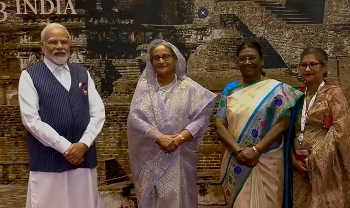 जी20 में शामिल होने के लिए दिल्ली पहुंची बांग्लादेश की पीएम शेख हसीना भारत मंडपम में आयोजित डिनर में शामिल हुईं। इस दौरान उन्होंने साड़ी पहना था।