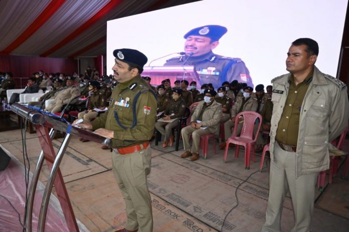 दिनांक 04/12/21 को प्रधानमंत्री, भारत सरकार श्री नरेन्द्र मोदी जी के प्रस्तावित जनपद भ्रमण कार्यक्रम के दृष्टिगत सुरक्षा में नियुक्त किये गये समस्त पुलिस बल कि आज दिनांक 03/12/21 को श्री अशोक कुमार, पुलिस महानिदेशक उत्तराखंड की उपस्थिति मे वरिष्ठ पुलिस एवं प्रशासनिक अधिकारियों द्वारा मुख्य कार्यक्रम स्थल परेड ग्राउंड देहरादून में ब्रीफिंग की गयी। ब्रीफिंग के दौरान प्रधानमंत्री, भारत सरकार के जनपद भ्रमण कार्यक्रम के दृष्टिगत किए गए सुरक्षा-प्रबंधों की समीक्षा की गई तथा वर्तमान सुरक्षा परिदृश्य के दृष्टिगत सभी अधिकारी/कर्मचारियों को सजग व सतर्क रहकर अपना कर्तव्य निर्वहन करने हेतु निर्देशित किया गया।