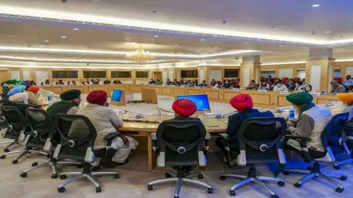 लगभग एक घंटे की वार्ता के बाद किसान नेताओं ने बैठक के दौरान मौन धारण करना तय किया और इसके साथ ही उन्होंने नारे लिखे बैनर लहराना आरंभ कर दिया. लिहाजा, तीनों मंत्री आपसी चर्चा के लिए हॉल से बाहर निकल आए. एक सूत्र ने बताया कि तीनों मंत्रियों ने दोपहर भोज का अवकाश भी नहीं लिया और एक कमरे में बैठक करते रहे. आज की बैठक शुरु होने से पहले तोमर ने केंद्रीय गृह मंत्री अमित शाह से मुलाकात की और दोनों के बीच लगभग एक घंटे वार्ता चली.