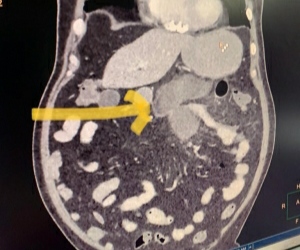 उनकी नैदानिक जांच में भी आंतों में छिद्र के कोई लक्षण नहीं दिखे। फिर भी, संदेह के आधार पर सर गंगा राम अस्पताल में मेडिकल गैस्ट्रोएंटरोलॉजी के वरिष्ठ सलाहकार डॉ. पीयूष रंजन ने रोगी के लिए एक तत्काल सीटी स्कैन कराने की सलाह दी।