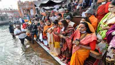 महाशिवरात्रि के मौके पर गुरुवार को पहला शाही स्नान संपन्न हो गया। इस दौरान आह्वान अखाड़ा, किन्नर अखाड़ा, जूना अखाड़ा और अग्नि अखाड़ा ने हरकी पौड़ी ब्रह्मकुंड पर स्नान किया। किन्नर अखाड़े के महामंडलेश्वर (प्रमुख) लक्ष्मी नारायण त्रिपाठी के मुताबिक उनके अखाड़े को स्वतंत्र अखाड़े के रूप में मान्यता दी जानी चाहिए। इस कुंभ में उनकी पेशवाई को जूना अखाड़े के साथ मिला दिया गया है, जहां त्रिपाठी एक ऊंट पर सवार हुए थे।