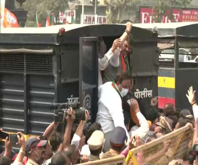 मुंबई, महाराष्ट्र में मुंबई पुलिस ने बुधवार को भाजपा के वरिष्ठ नेता व पूर्व सीएम देवेंद्र फडणवीस और पार्टी के अन्य नेताओं को हिरासत में लिया है। ये नेता महाराष्ट्र के मंत्री व एनसीपी नेता नवाब मलिक के इस्तीफे की मांग को लेकर विरोध मार्च निकाल रहे थे। गौरतलब है कि महाराष्ट्र भाजपा पिछले काफी समय से नवाब मलिक के इस्तीफे की मांग को लेकर अड़ी हुई है। दाऊद इब्राहिम मनी लांड्रिंग मामले में ईडी ने नवाब मलिक को हिरासत में लिया था। कोर्ट ने मलिक को ईडी की हिरासत में भेजा था। इधर, मलिक के इस्तीफे की मांग को लेकर भाजपा महाराष्ट्र की उद्धव सरकार पर लगातार दबाव बना रही है। वहीं, एनसीपी कह चुकी है कि वह मलिक का इस्तीफा किसी भी कीमत पर नहीं लेगी।   jagran