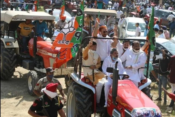 भारतीय जनता पार्टी (भाजपा) किसानों के बीच लगातार केन्द्र बीच पैठ बनाने में जुटी हैं। इसी के तहत किसान मोर्चा ने चौपाल के साथ नवंबर माह में ट्रैक्टर रैली निकालने का एलान किया है। इसके माध्यम से केन्द्र और राज्य सरकार द्वारा किसानों के कल्याण की चलाई जा रही योजनाओं का बखान होगा। इसके अलावा तीन कृषि कानूनों के खिलाफ चल रहे आंदोलन कर संगठनों की पोल खोलने की तैयारी है। साथ ही दिसम्बर माह में प्रत्येक विधानसभा में किसान सम्मेलन आयोजित किए जाएंगे। भाजपा किसान मोर्चा के प्रदेश अध्यक्ष कामेश्वर सिंह ने बताया कि मोर्चा की ओर से हर जिले में 15 से 20 किलोमीटर की परिधि पर ट्रैक्टर रैली निकाली जाएगी। इसमें मोदी और योगी सरकार की किसानों की कल्याणकारी योजनाओं के बारे में सबको बताया जाएगा। इसमें गन्ना का मूल्य वृद्धि, पराली जलाने में वापस हुए मुकदमें, बिजली के बिल में छूट, किसान कल्याण निधि के बारे में किसानों के बीच चर्चा होगी। अभी सभी ग्राम पंचायतों में किसान चौपाल आयोजित की जा रही है। इसमें किसानों की हित में किए गये सारे कार्यों को बताया जा रहा है। चाहे किसान कल्याण निधि हो, गन्ना मूल्य वृद्धि या भुगतान हो, सभी मुद्दों पर चर्चा हो रही है।