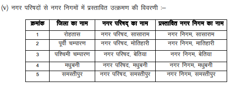 आज संपन्न हुई कैबिनेट बैठक में जिन पांच नगर परिषदों को अपग्रेड कर नगर निगम में बदलने की मंजूरी दी गई है उनमें सासाराम, बेतिया मोतीहारी, मधुबनी और समस्तीपुर शामिल हैं. अब ये सभी नगर परिषद नगर निगम कहलाएंगे.