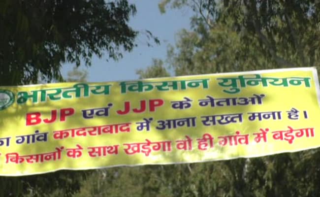 हरियाणा के करनाल (Karnal) जिले में इंद्री के गांव कादराबाद में किसान आंदोलन के समर्थन में गांव के लोगों ने भाजपा और जेजेपी के नेताओं का गांव में प्रवेश पर बैन लगा दिया है. गांव के लोगों ने पंचायत कर गांव के बाहर बैनर लगा दिया है, जिसपर जेजेपी और बीजेपी के लोगों के गांव में आने पर उनकी छितर (जूतों) परेड कराने की चेतावनी दी है.
