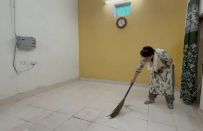 कमरा गंदा था और प्रियंका ने झाड़ू मांगी और उसे खुद साफ किया।