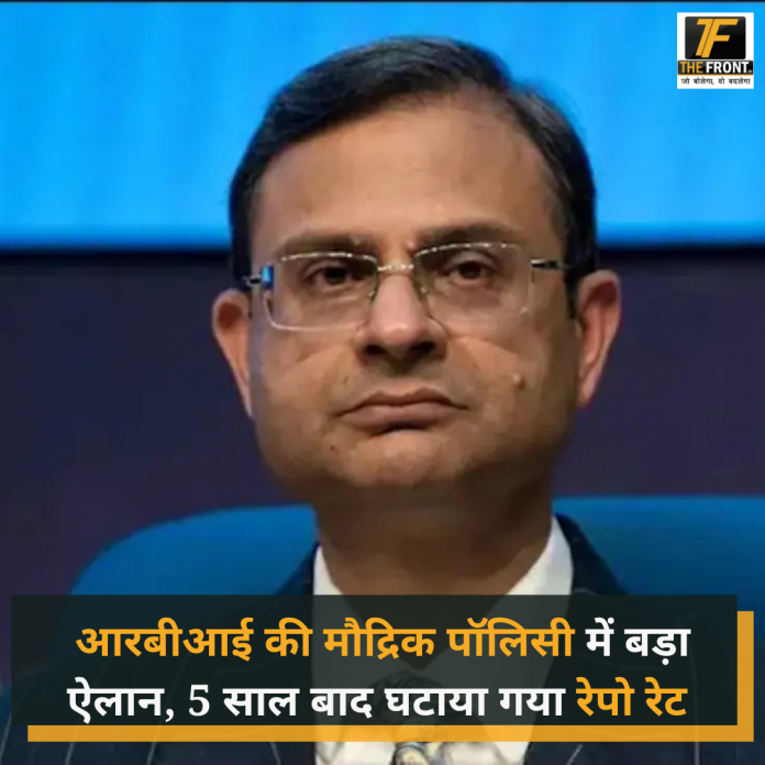 नई दिल्ली, भारतीय रिज़र्व बैंक (RBI) की मौद्रिक नीति समिति (MPC) ने 5 साल बाद रेपो रेट में 25 बेसिस पॉइंट (bps) की कटौती की है। अब रेपो रेट 6.25% हो गया है। इससे पहले, लगातार 11 बैठकों में ब्याज दरों में कोई बदलाव नहीं किया गया था। आखिरी बार मई 2020 में कोविड-19 महामारी के दौरान रेपो रेट घटाया गया था।