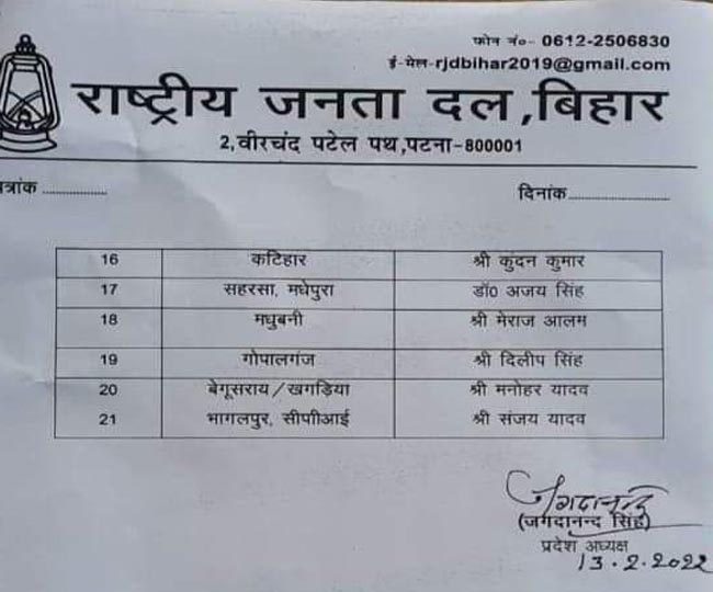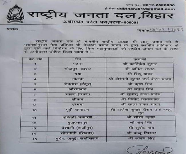 एमएलसी चुनाव के लिए 21 सीटों पर राजद ने किया उम्‍मीदवारों का ऐलान, जानिए प्रत्‍याशियों के नाम