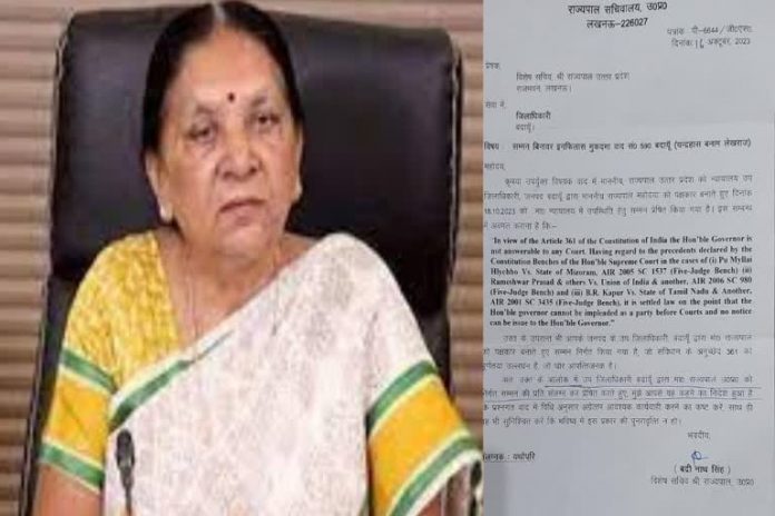 इस मामले पर एसडीएम न्यायिक कोर्ट से लेखराज और राज्यपाल को कोर्ट में हाजिर होकर पक्ष रखने का राजस्व संहिता की धारा 144 का नोटिस जारी किया. इस नोटिस के मिलते ही राजभवन में हड़कंप मच गया. इसे बाद विशेष सचिव राज्यपाल बद्री नाथ सिंह द्वारा जिलाधिकारी बदायूं को नोटिस जारी कर घोर आपत्ति दर्ज कराई गई साथ ही चेतावनी दी गयी है कि भविष्य में ऐसी गलती दोबारा न की जाए. पत्र में लिहा गया है कि जारी नोटिस संविधान के अनुच्छेद 361 का घोर उल्लंघन बताया गया है.