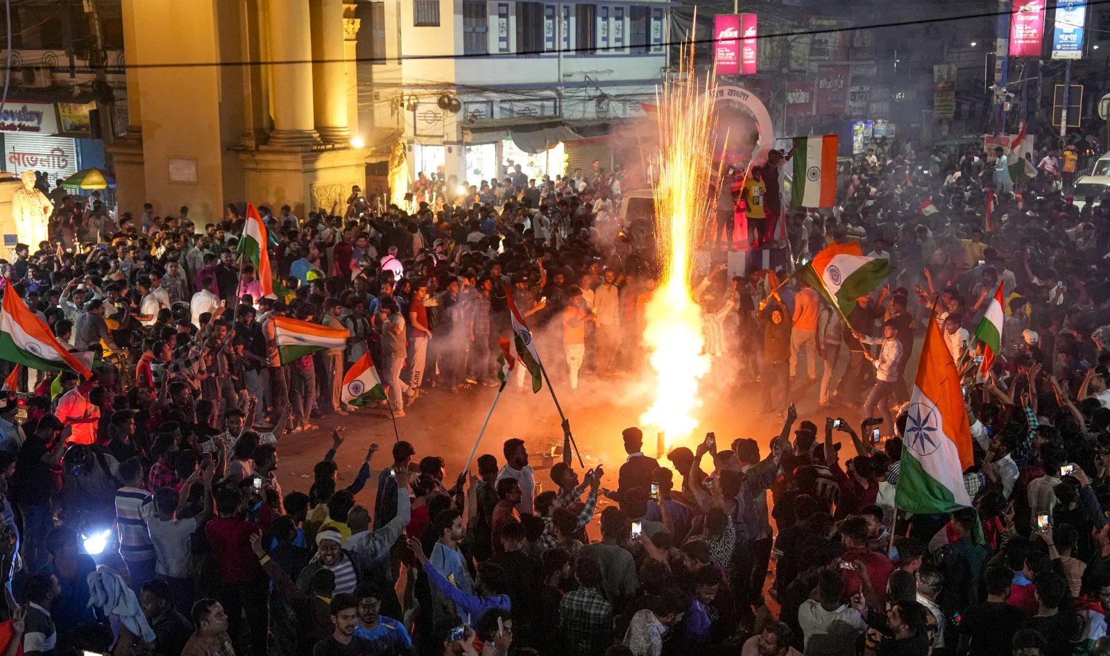 टीम इंडिया की जीत के बाद देश के हर कोने में जश्न की धूम रही। दिल्ली, मुंबई, कोलकाता, बेंगलुरु, चेन्नई, पटना, लखनऊ जैसे बड़े शहरों से लेकर छोटे कस्बों और गांवों तक, हर जगह लोग टीम इंडिया की इस शानदार जीत का जश्न मनाने घरों से बाहर निकले। फैंस हाथों में तिरंगा और खिलाड़ियों के पोस्टर लिए सड़कों पर नाचते-गाते नजर आए।