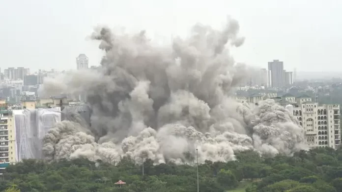 नई दिल्ली। नोएडा के ट्विन टॉवर को गिराने के बाद प्रदूषण के स्तर में कोई बदलाव नहीं आया है। एयर क्वालिटी में कोई बदलाव नहीं दिखा है। नोएडा में 100 मीटर से अधिक ऊंचे सुपरटेक ट्विन टॉवरों को गिराने के पहले और बाद में एक्यूआई और पीएम 10 की निगरानी की गई है। दोनों के स्तर में कोई खास बदलाव नहीं देखा गया है। विशेषज्ञों के मुताबिक टॉवर्स के डिमोलिशन के बाद भी पीएम 10 स्वीकार्य लेवल पर रहा।