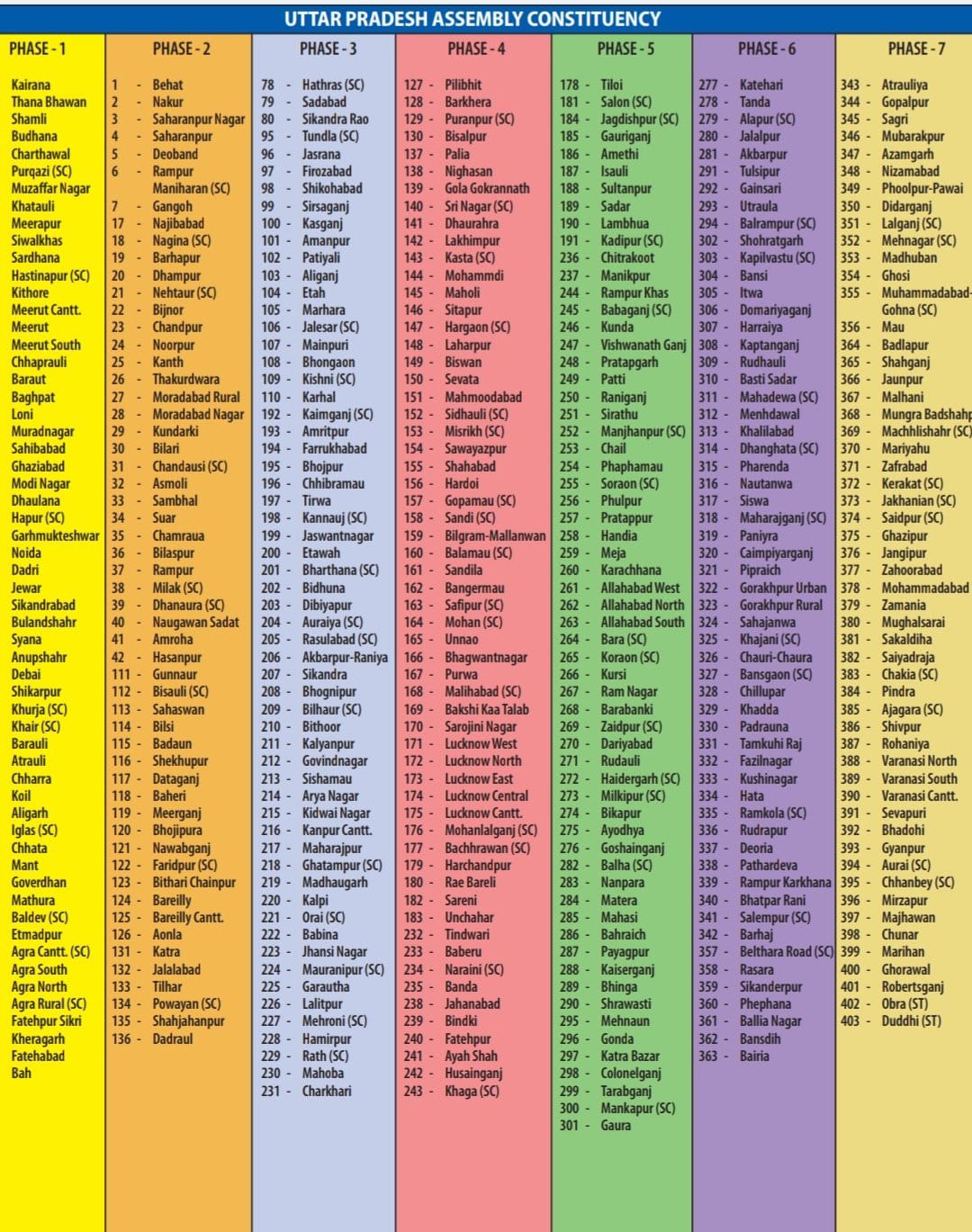 आजमगढ़ : अतरौलिया, गोपालपुर, सगड़ी, मुबारकपुर, निजामाबाद, आजमगढ़ सदर, लालगंज सुरक्षित, मेंहनगर सुरक्षित, फूलपुर पवई, दीदारगंज