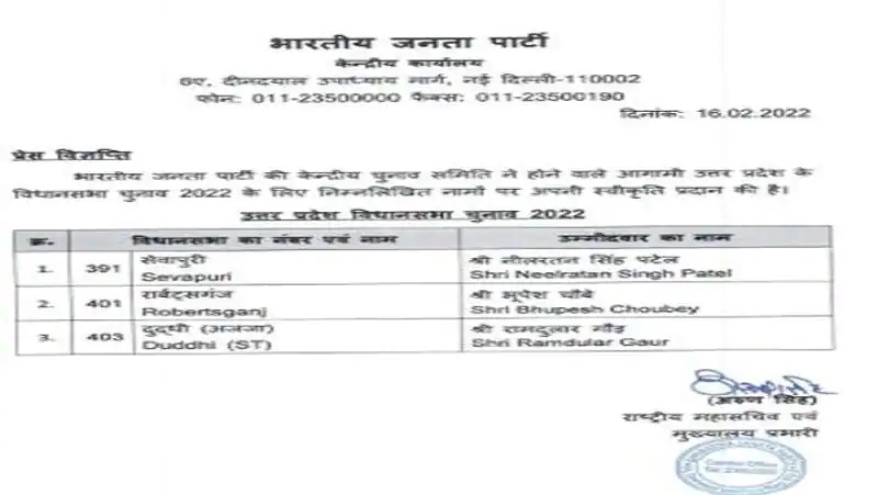 यूपी चुनाव के लिए भाजपा ने जारी की 3 और प्रत्याशियों की लिस्ट, अहम सीटों पर उम्मीदवारों का हुआ ऐलान