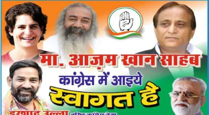 प्रयागराज के कांग्रेस नेता इरशाद उल्ला ने बाकायदा कांग्रेस महासचिव प्रियंका गांधी और आचार्य प्रमोद कृष्णम के साथ आजम खान के फोटो वाले पोस्टर लगाकर सियासी गलियारे में अलग ही चर्चाएं छेड़ दी हैं। इरशाद उल्ला इस पोस्टर के जरिए आजम खान का कांग्रेस में ‘स्वागत’ करते नजर आ रहे हैं। इस पोस्टर में पूर्व प्रदेश प्रवक्ता बाबा अभय अवस्थी की तस्वीर भी लगाई गई है।