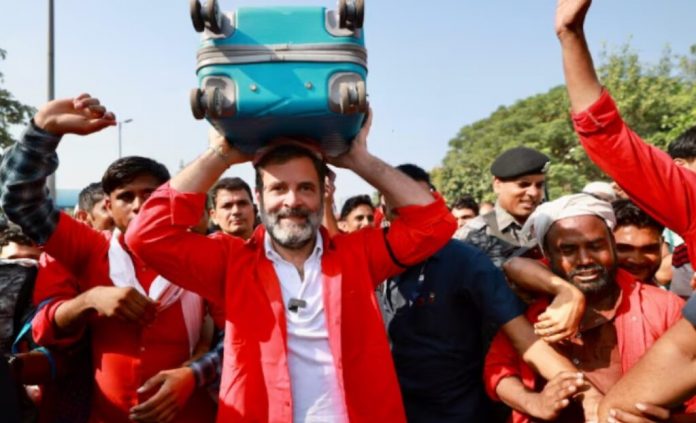 इस दौरान कुली राहुल गांधी को अपने बीच पाकर काफी खुश है और उनके साथ फोटो खींचवाने की होड़ देखी जा सकती है।